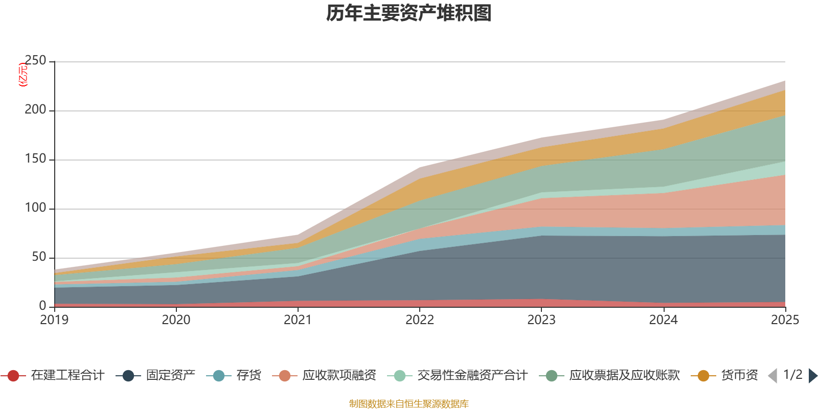 资产重大变化方面,截至2025年末,公司固定资产较上年末增加0.95%,占公司总资产比重下降5.88个百分点;应收款项融资较上年末增加43.29%,占公司总资产比重上升3.47个百分点;交易性金融资产合计较上年末增加114.06%,占公司总资产比重上升2.59个百分点;无形资产较上年末减少2.08%,占公司总资产比重下降0.4个百分点。
