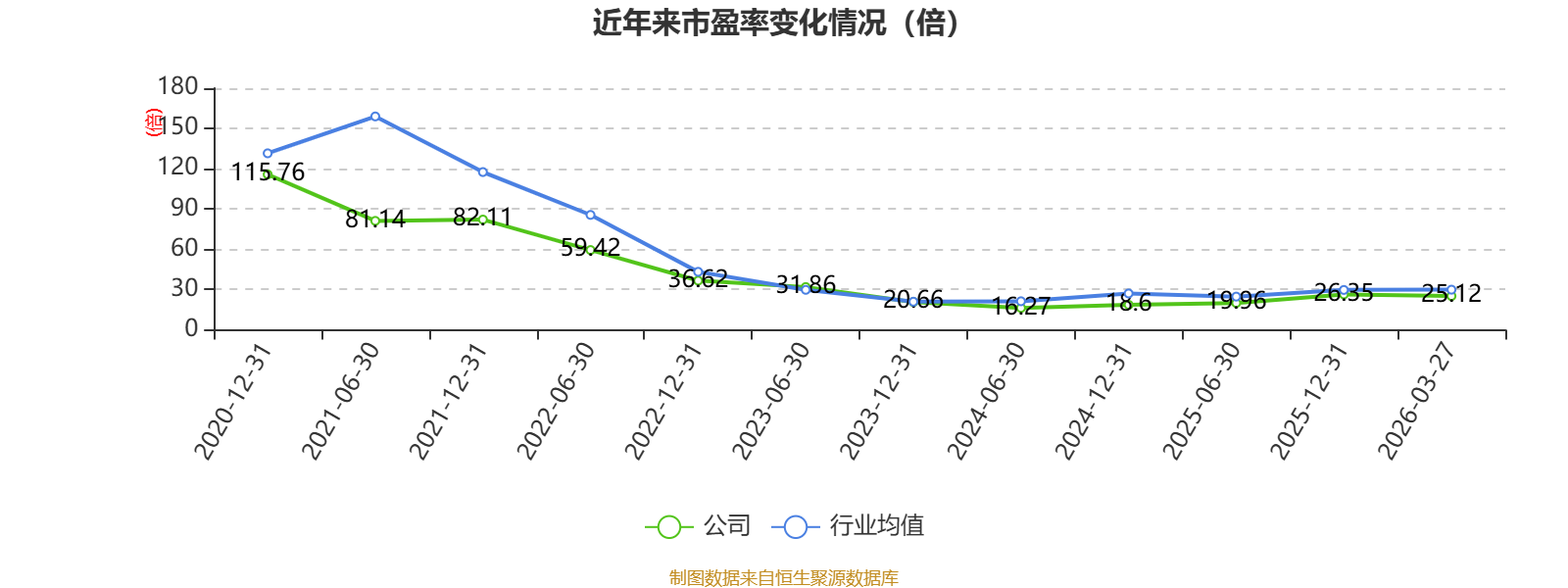 以3月27日收盘价计算,科达利目前市盈率(TTM)约为25.12倍,市净率(LF)约3.31倍,市销率(TTM)约2.91倍。