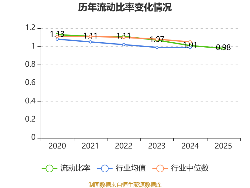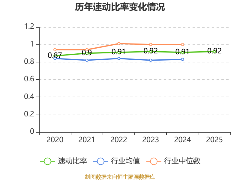 2025年,公司流动比率为0.98,速动比率为0.92。