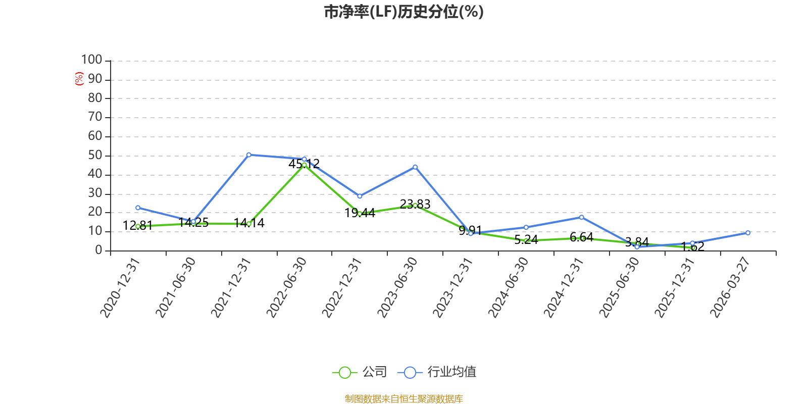 市盈率、市净率为负时,不显示当期分位数,会导致折线图中断。