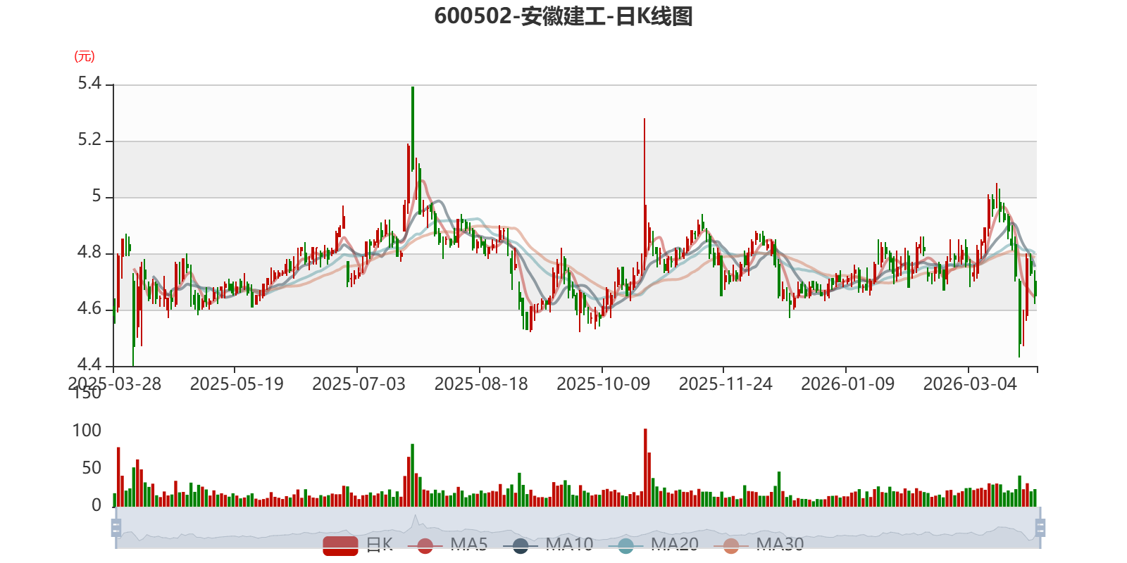 以3月27日收盘价计算,安徽建工目前市盈率(TTM)约为5.23倍,市净率(LF)约0.42倍,市销率(TTM)约0.1倍。