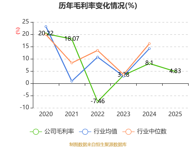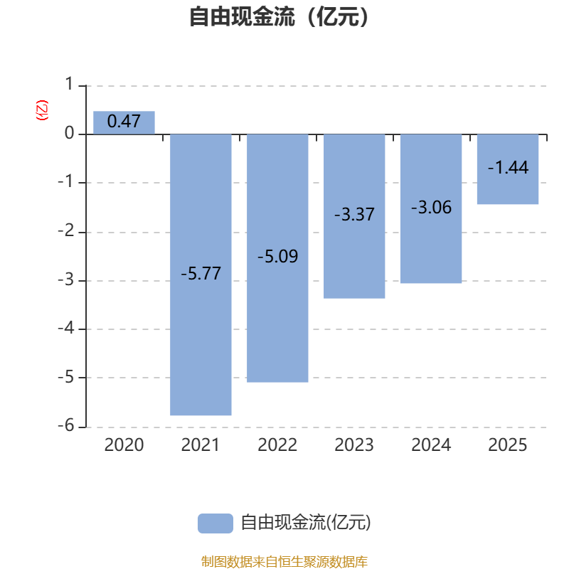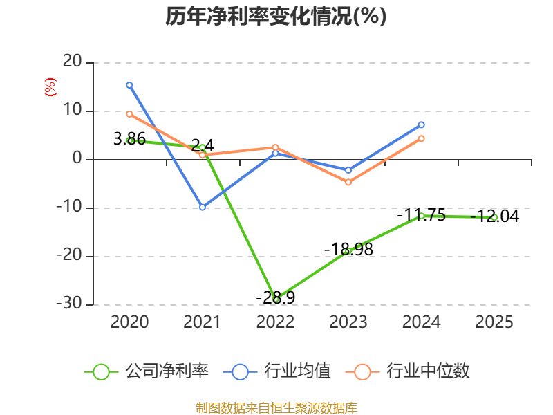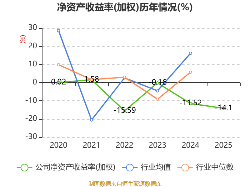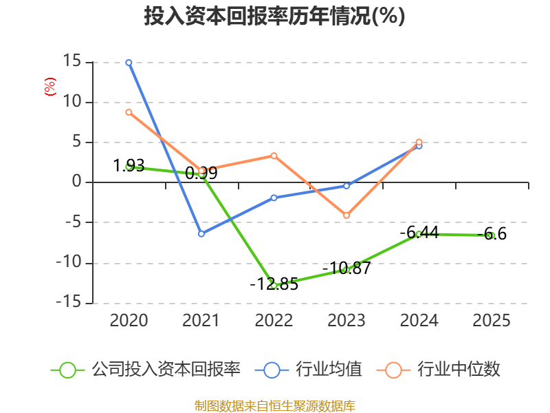 数据显示,2025年公司加权平均净资产收益率为-14.1%,较上年同期下降2.58个百分点。公司2025年投入资本回报率为-6.6%,较上年同期下降0.16个百分点。