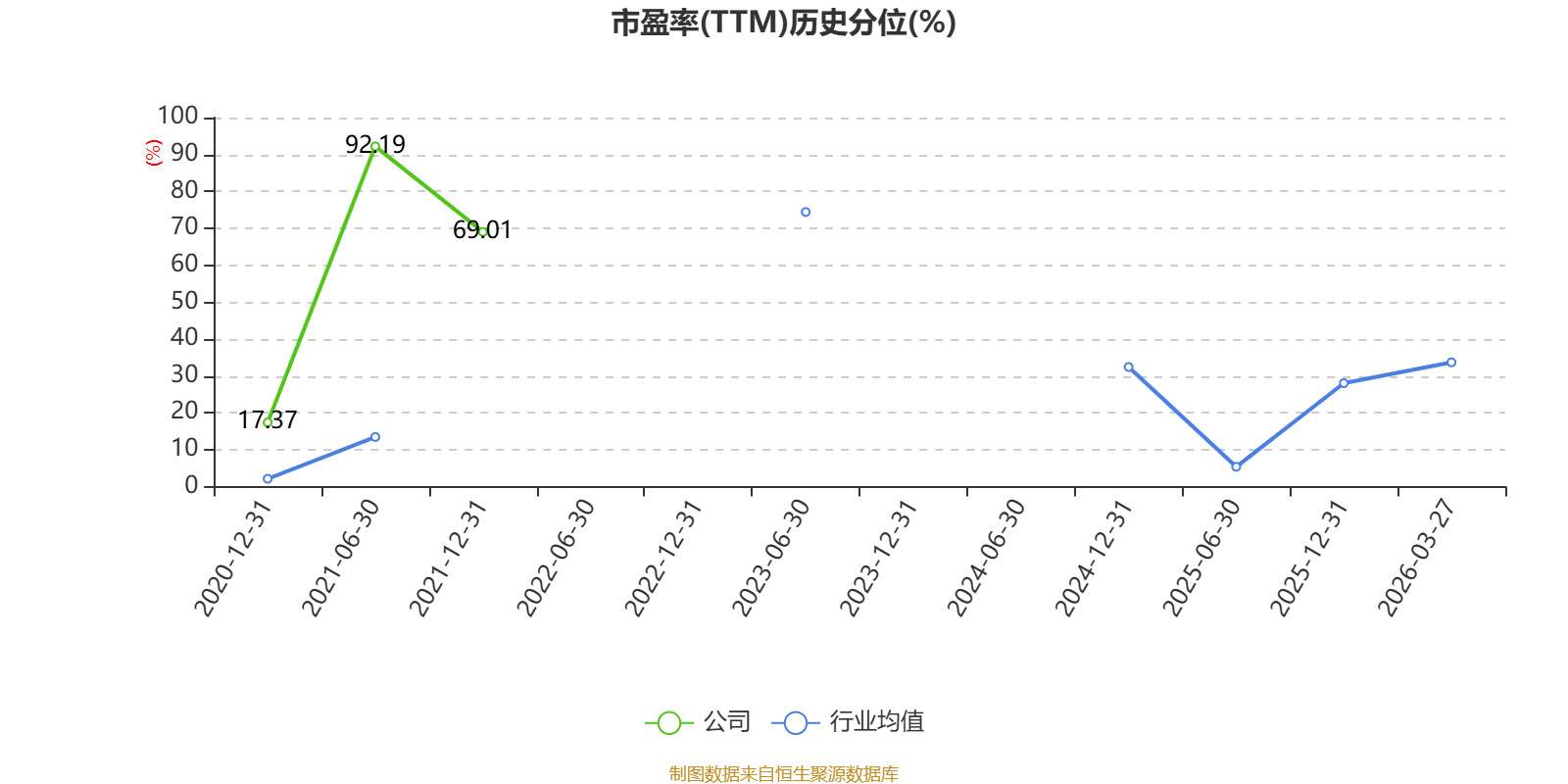 市盈率、市净率为负时,不显示当期分位数,会导致折线图中断。