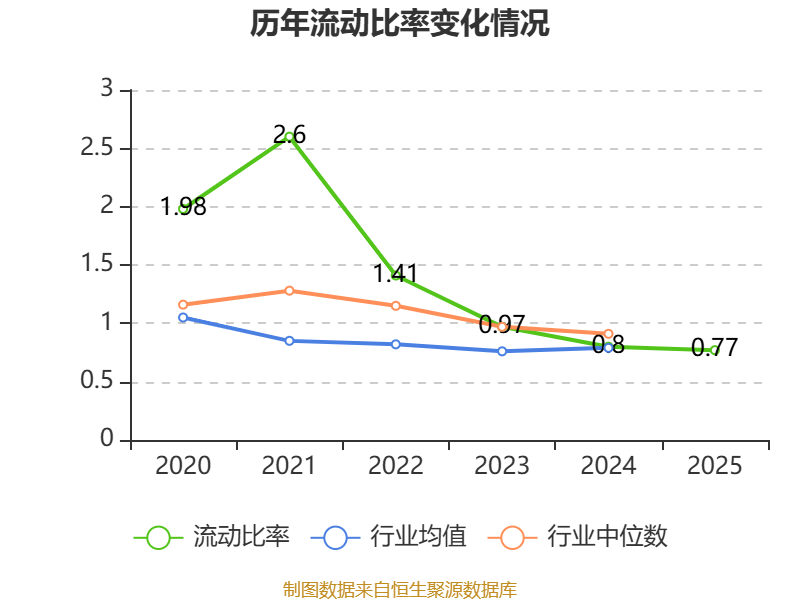 2025年,公司流动比率为0.77,速动比率为0.4。