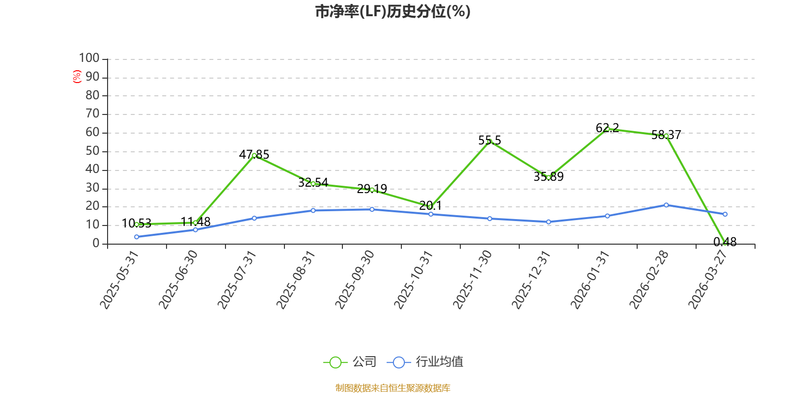 市盈率、市净率为负时,不显示当期分位数,会导致折线图中断。