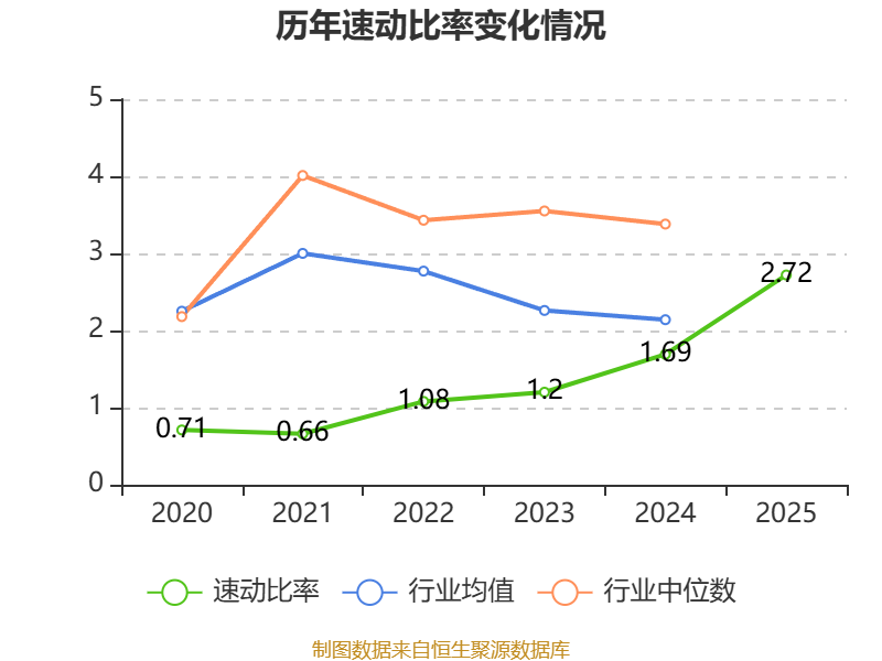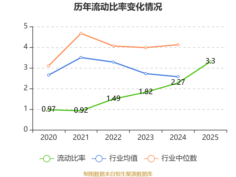 2025年,公司流动比率为3.3,速动比率为2.72。