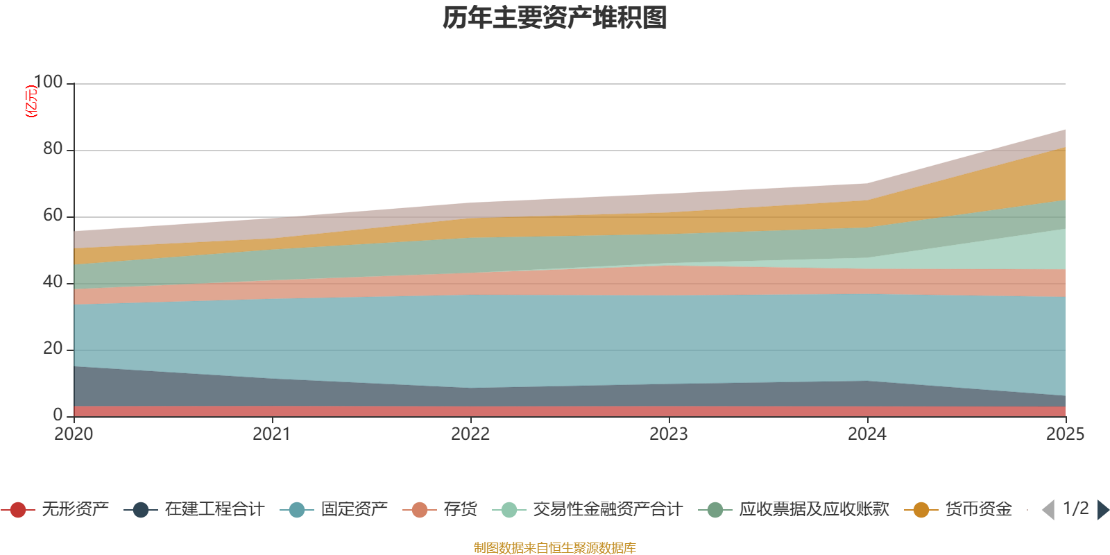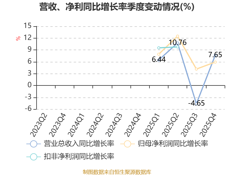 资产重大变化方面,截至2025年末,公司交易性金融资产合计较上年末增加269.85%,占公司总资产比重上升9.46个百分点;在建工程合计较上年末减少58.02%,占公司总资产比重下降7.24个百分点;货币资金较上年末增加93.63%,占公司总资产比重上升6.7个百分点;应收票据及应收账款较上年末减少4.44%,占公司总资产比重下降2.91个百分点。
