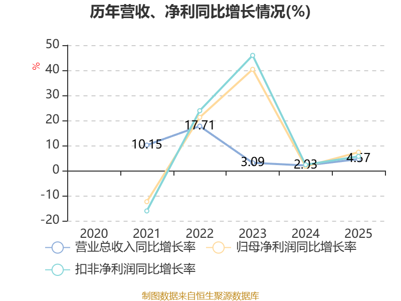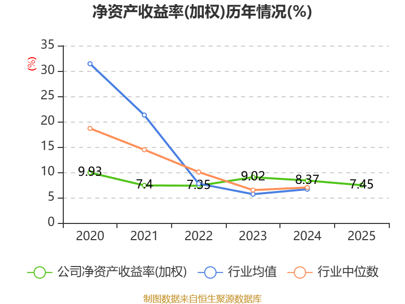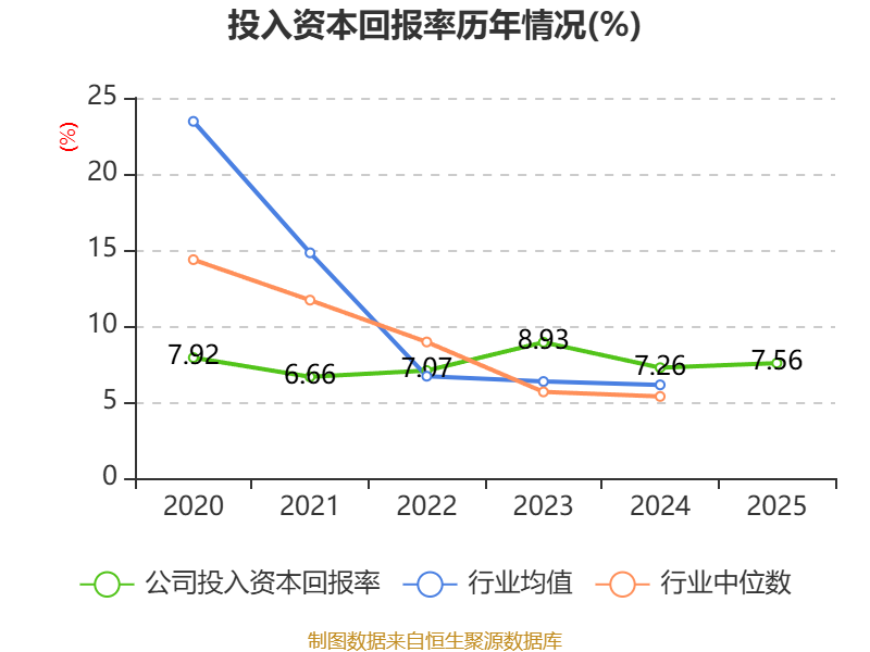 数据显示,2025年公司加权平均净资产收益率为7.45%,较上年同期下降0.92个百分点。公司2025年投入资本回报率为7.56%,较上年同期上升0.3个百分点。