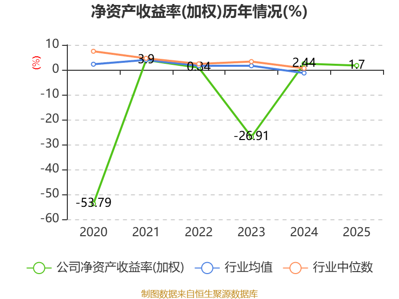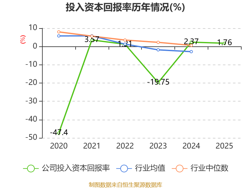 数据显示,2025年公司加权平均净资产收益率为1.7%,较上年同期下降0.74个百分点。公司2025年投入资本回报率为1.76%,较上年同期下降0.61个百分点。