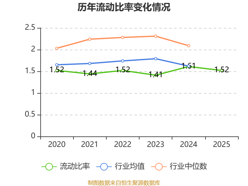 2025年,公司流动比率为1.52,速动比率为1.29。