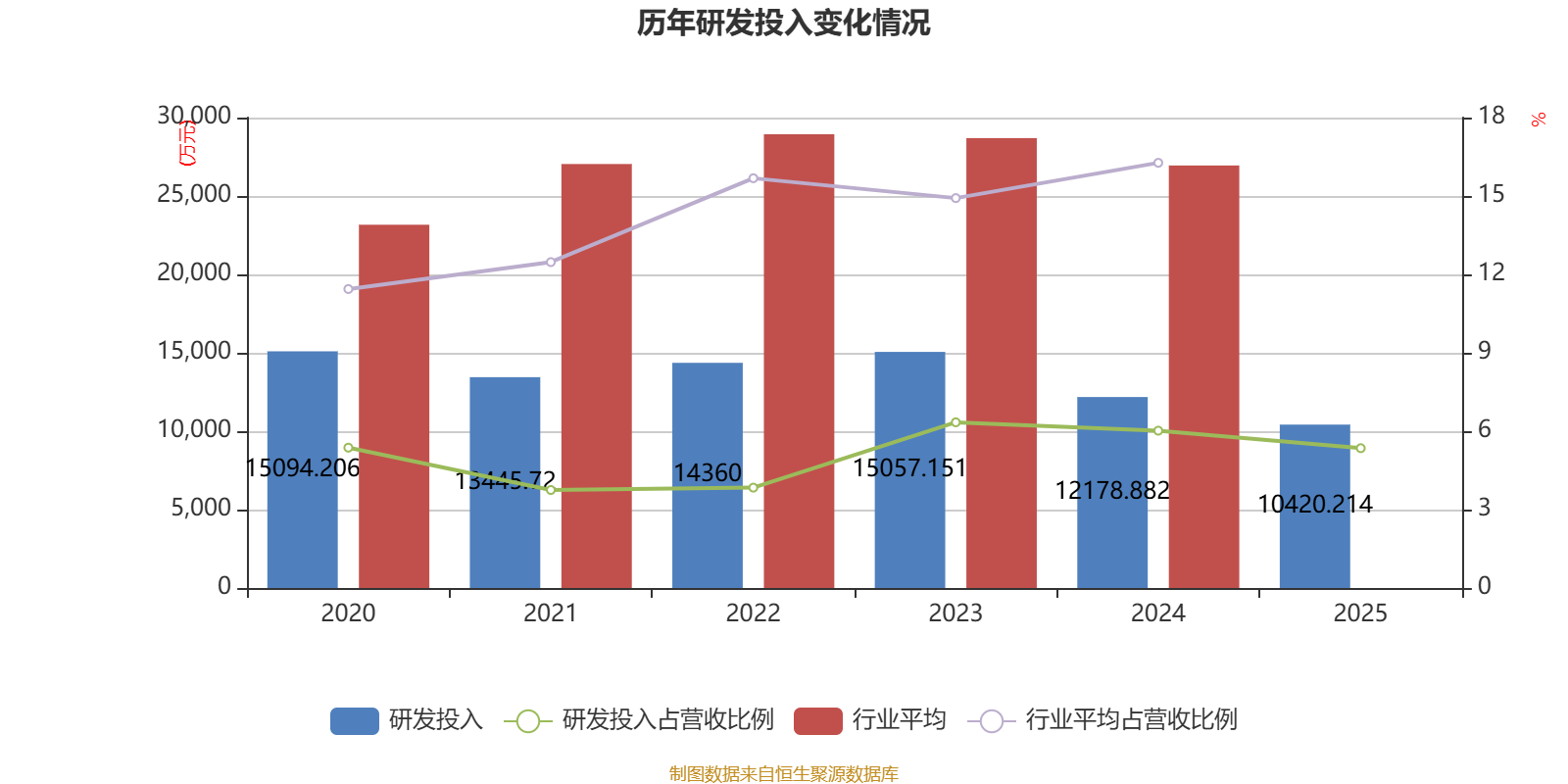 2025年全年,公司研发投入金额为1.04亿元,同比下降14.44%;研发投入占营业收入比例为5.35%,相比上年同期下降0.67个百分点。此外,公司全年研发投入资本化率为0%。