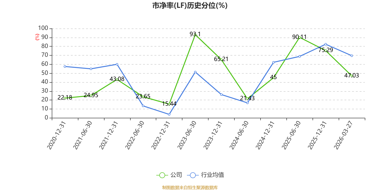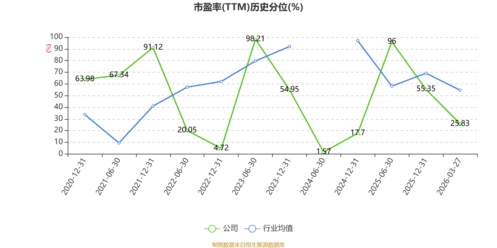 市盈率、市净率为负时,不显示当期分位数,会导致折线图中断。