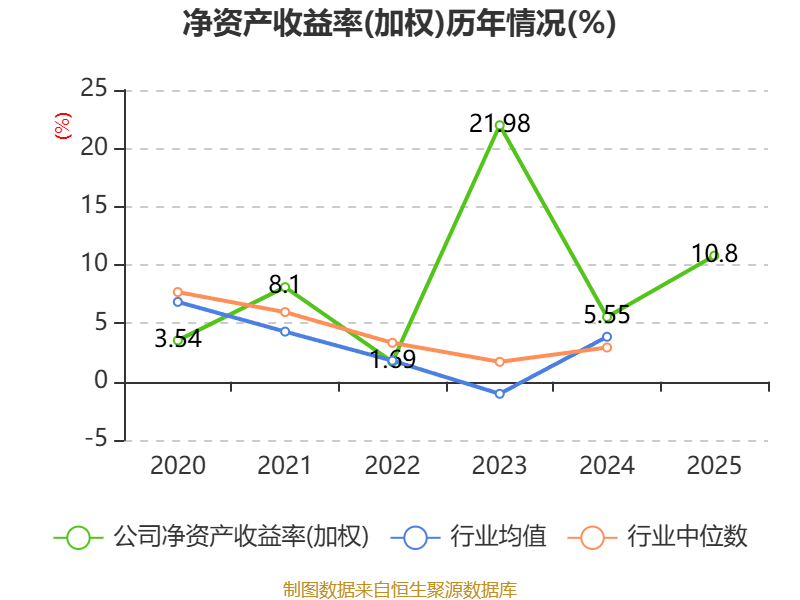 数据显示,2025年公司加权平均净资产收益率为10.8%,较上年同期上升5.25个百分点。公司2025年投入资本回报率为9.37%,较上年同期上升5.87个百分点。