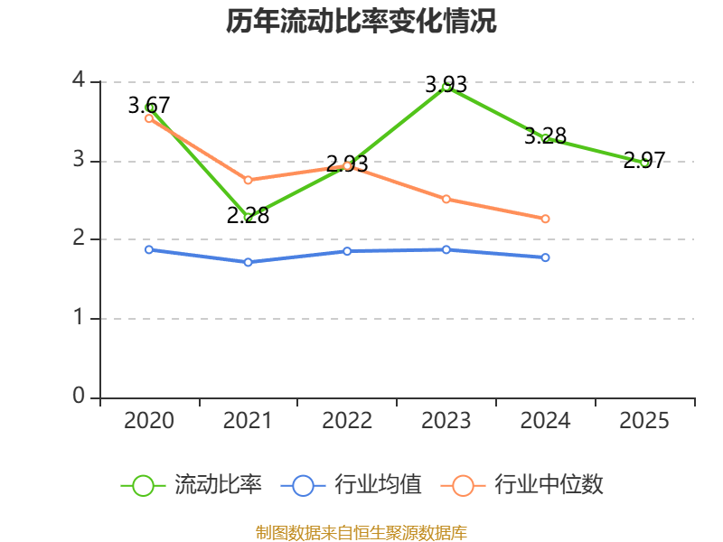 2025年,公司流动比率为2.97,速动比率为2.89。