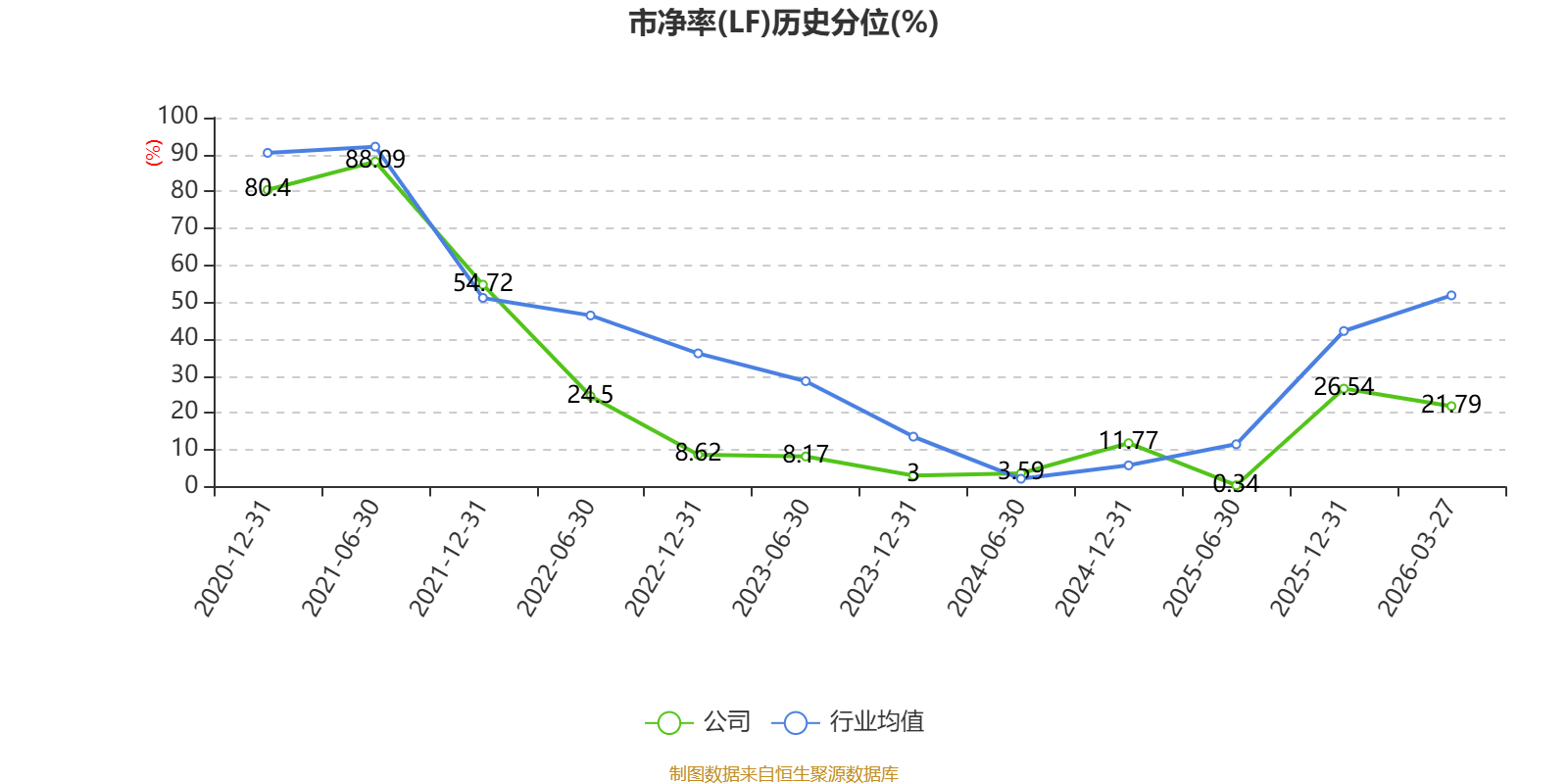 市盈率、市净率为负时,不显示当期分位数,会导致折线图中断。