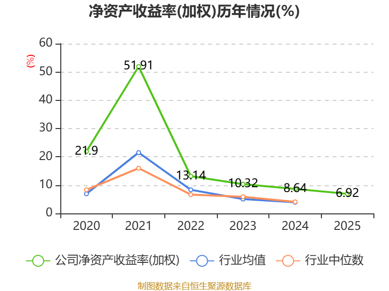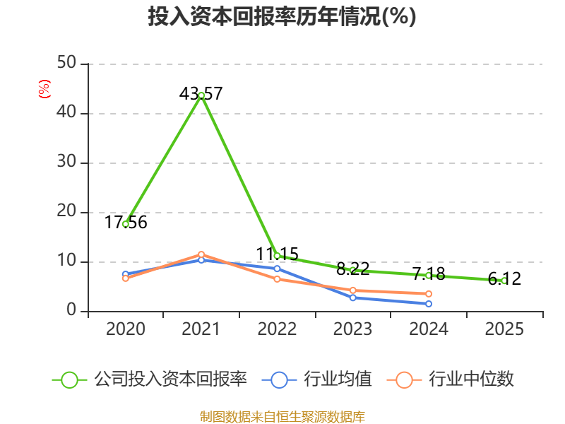 数据显示,2025年公司加权平均净资产收益率为6.92%,较上年同期下降1.72个百分点。公司2025年投入资本回报率为6.12%,较上年同期下降1.06个百分点。