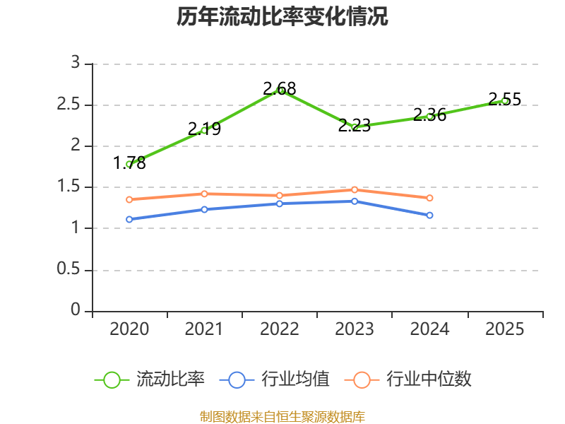 2025年,公司流动比率为2.55,速动比率为2.09。