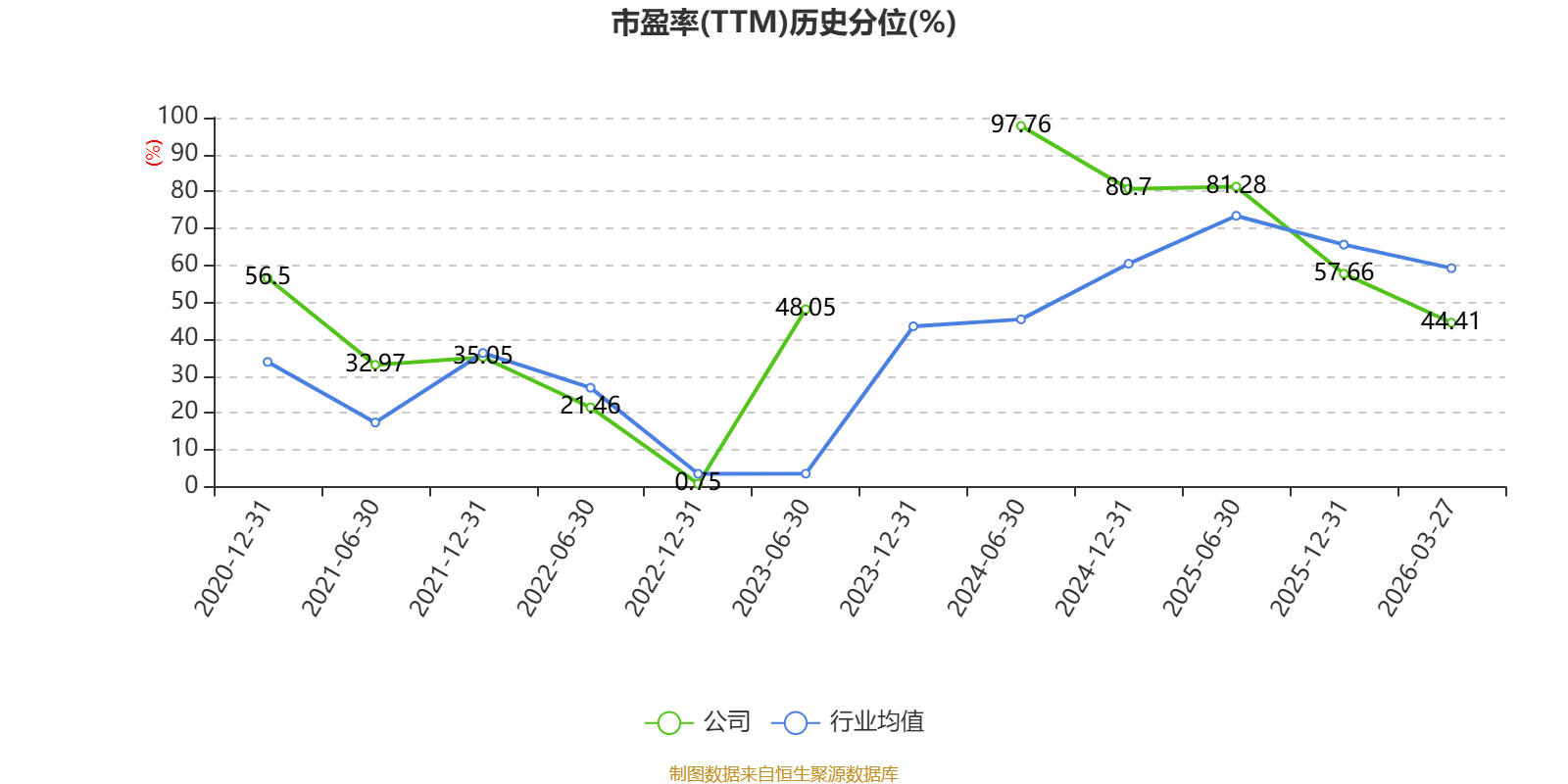 市盈率、市净率为负时,不显示当期分位数,会导致折线图中断。