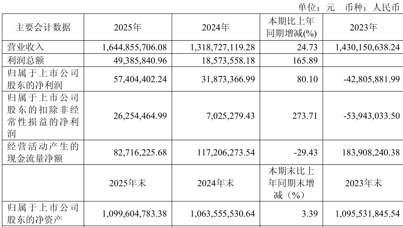 中证智能财讯大地熊(688077)3月28日披露2025年年度报告。2025年,公司实现营业总收入16.45亿元,同比增长24.73%;归母净利润5740.44万元,同比增长80.10%;扣非净利润2625.45万元,同比增长273.71%;经营活动产生的现金流量净额为8271.62万元,同比下降29.43%;报告期内,大地熊基本每股收益为0.5元,加权平均净资产收益率为5.36%。公司2025年度分配预案为:拟向全体股东每10股派现2.2元(含税)。