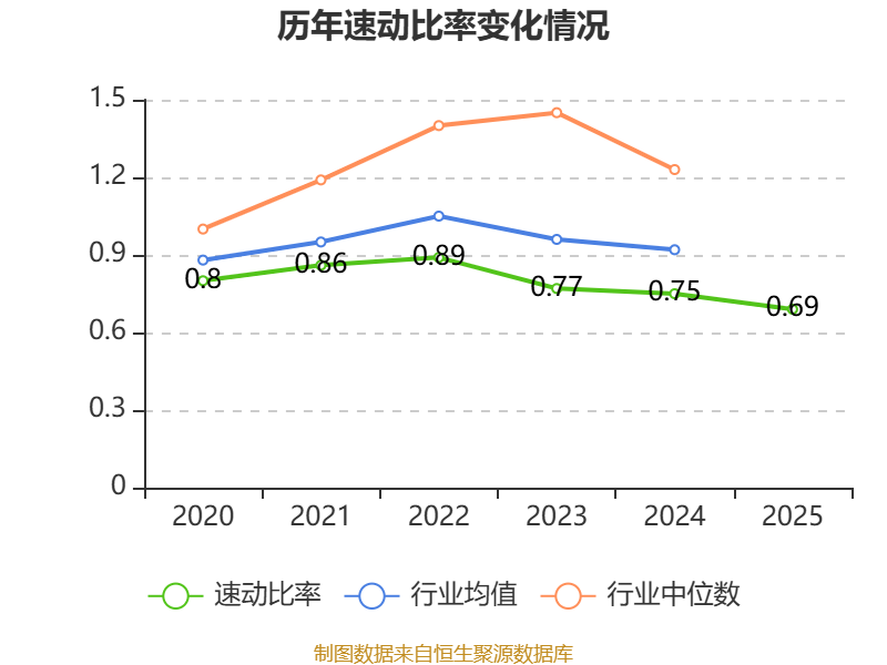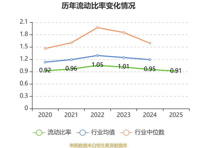2025年,公司流动比率为0.91,速动比率为0.69。