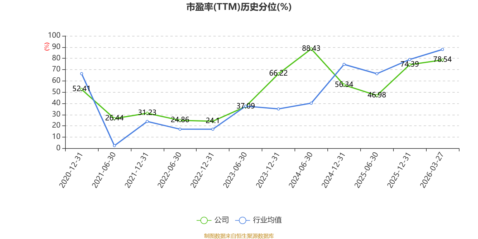 市盈率、市净率为负时,不显示当期分位数,会导致折线图中断。