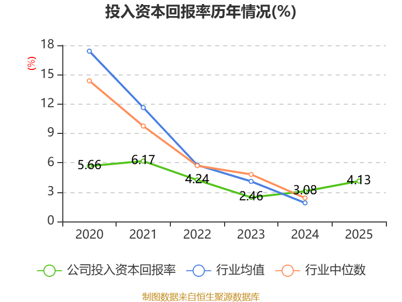数据显示,2025年公司加权平均净资产收益率为7.08%,较上年同期上升2.17个百分点。公司2025年投入资本回报率为4.13%,较上年同期上升1.05个百分点。