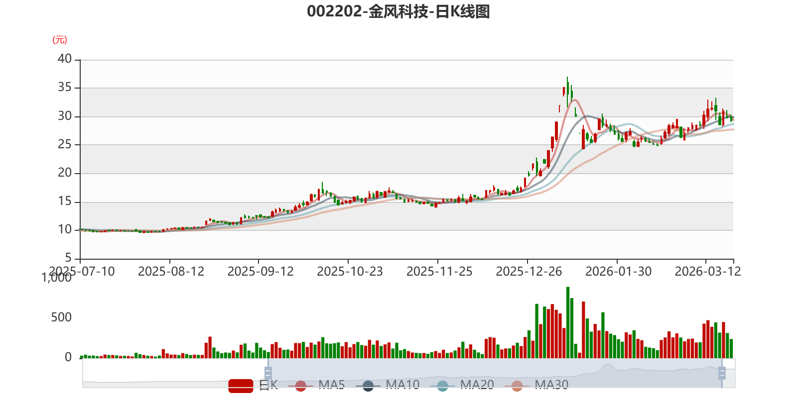 以3月27日收盘价计算,金风科技目前市盈率(TTM)约为41.79倍,市净率(LF)约2.67倍,市销率(TTM)约1.59倍。