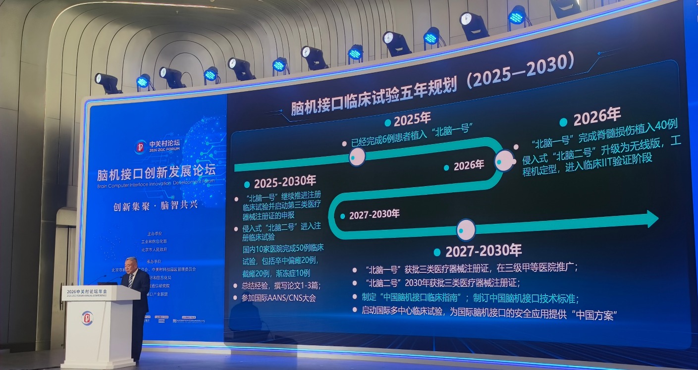 据赵继宗在演讲中介绍,《脑机接口临床试验五年规划(2025-2030)》提出展望,2027年至2030年,“北脑一号”获批三类医疗器械注册证,在三级甲等医院推广;“北脑二号”于2030年获批三类医疗器械注册证;制定中国脑机接口临床指南,制订中国脑机接口技术标准。