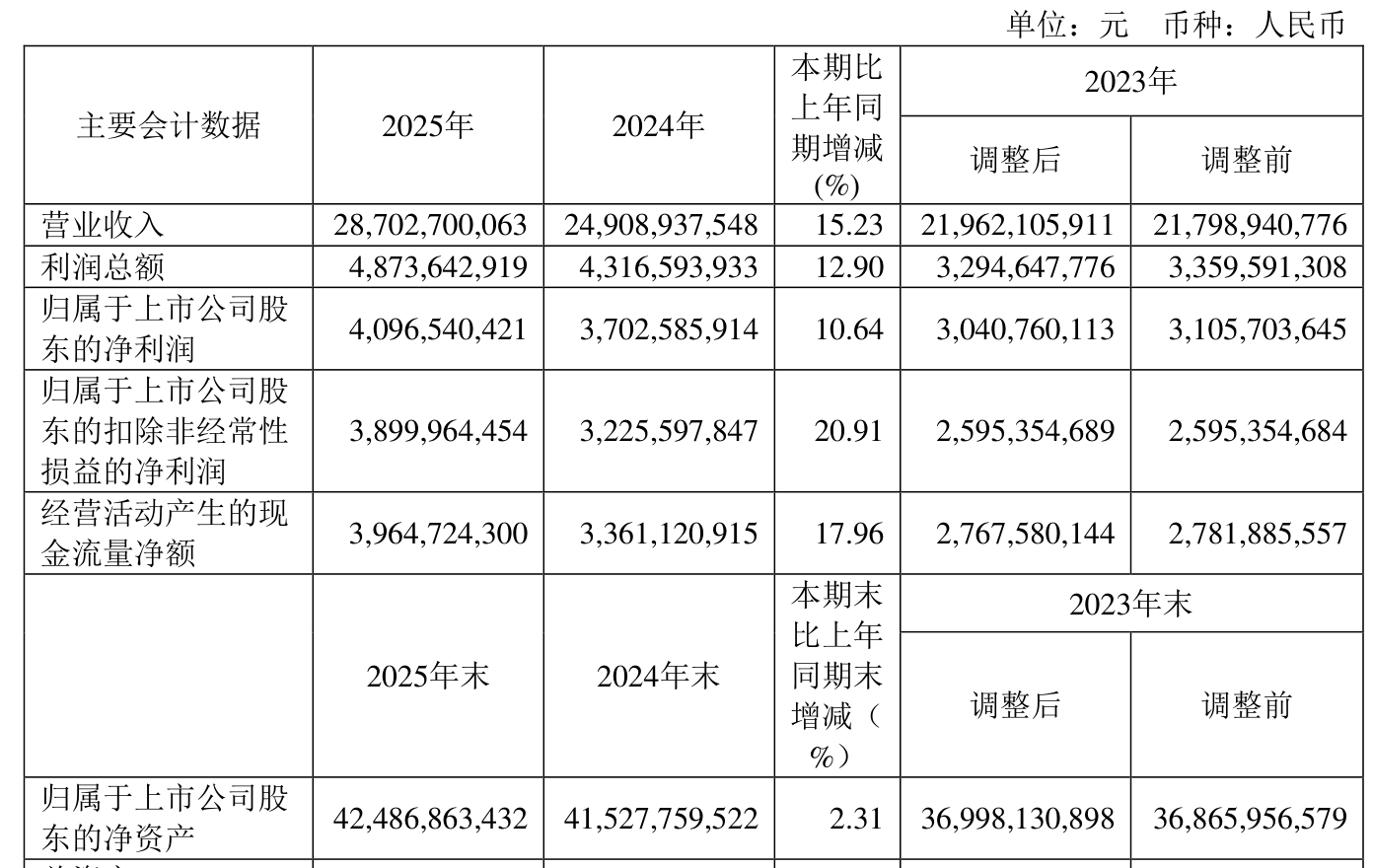 资产重大变化方面,截至2025年末,公司其他非流动资产较上年末增加220.24%,占公司总资产比重上升10.19个百分点;货币资金较上年末减少36.97%,占公司总资产比重下降7.12个百分点;交易性金融资产合计较上年末减少71.69%,占公司总资产比重下降4.07个百分点;固定资产较上年末增加32.58%,占公司总资产比重上升2.54个百分点。