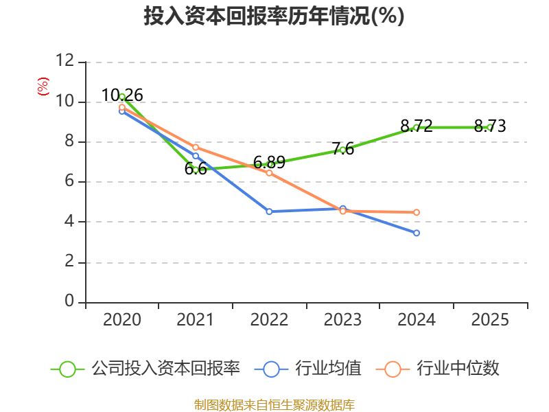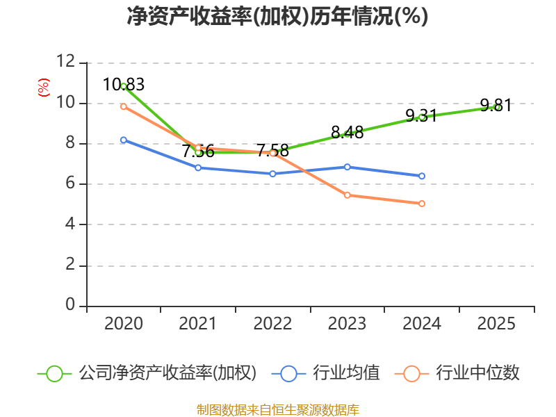 数据显示,2025年公司加权平均净资产收益率为9.81%,较上年同期上升0.5个百分点。公司2025年投入资本回报率为8.73%,较上年同期上升0.01个百分点。