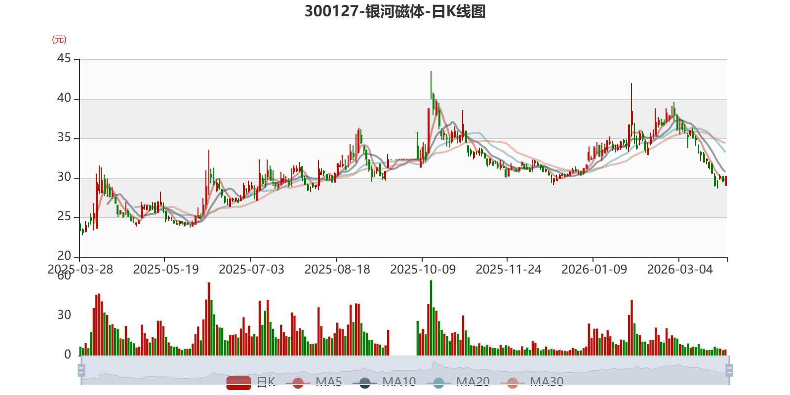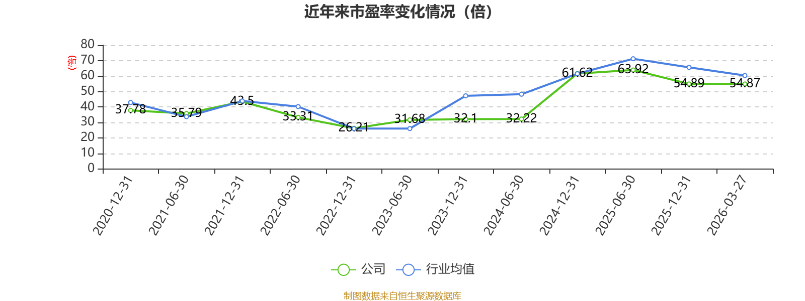 以3月27日收盘价计算,银河磁体目前市盈率(TTM)约为54.87倍,市净率(LF)约6.44倍,市销率(TTM)约11.37倍。