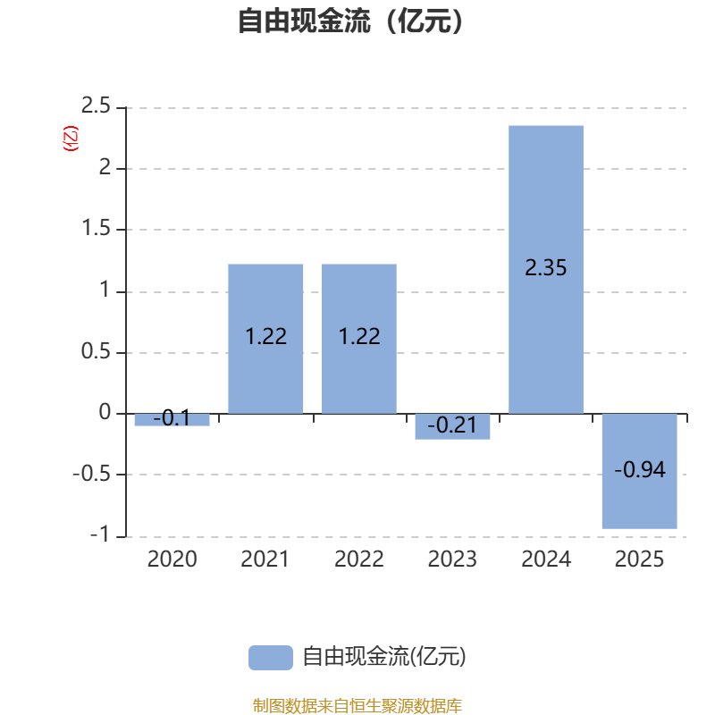 截至2025年,公司经营活动现金流净额为9966.22万元,同比下降65.41%;筹资活动现金流净额-1.09亿元,同比增加8361.11万元;投资活动现金流净额-1.91亿元,上年同期为-4475.09万元。