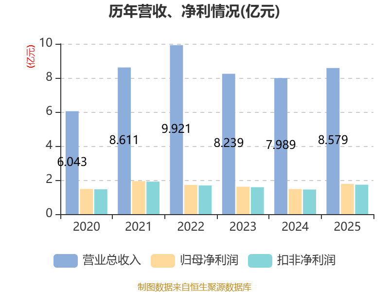 中证智能财讯银河磁体(300127)3月28日披露2025年年度报告。2025年,公司实现营业总收入8.58亿元,同比增长7.38%;归母净利润1.78亿元,同比增长20.75%;扣非净利润1.73亿元,同比增长19.63%;经营活动产生的现金流量净额为9966.22万元,同比下降65.41%;报告期内,银河磁体基本每股收益为0.55元,加权平均净资产收益率为12.14%。公司2025年度分配预案为:拟向全体股东每10股派现4元(含税)。