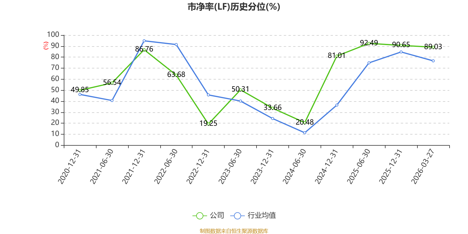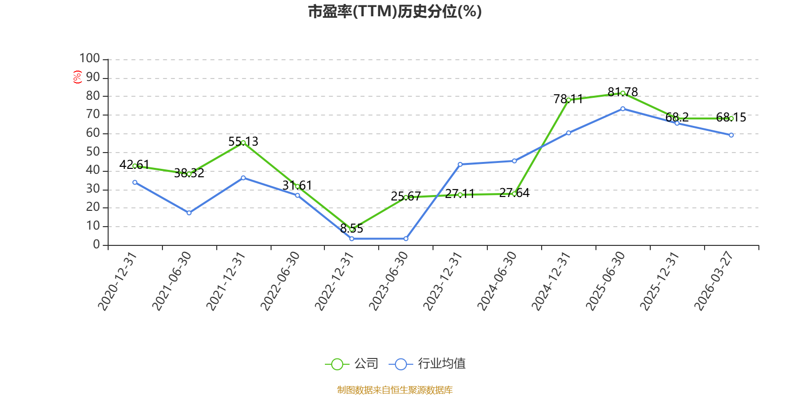 市盈率、市净率为负时,不显示当期分位数,会导致折线图中断。