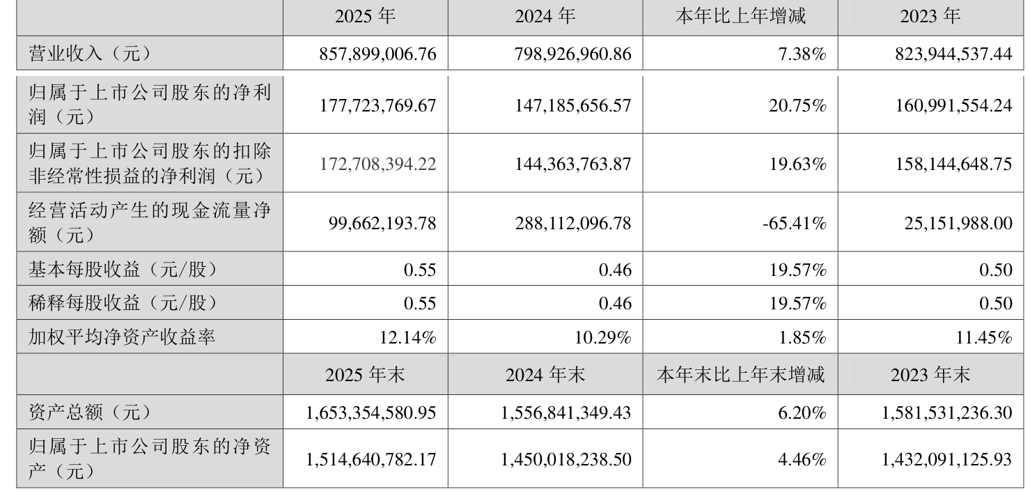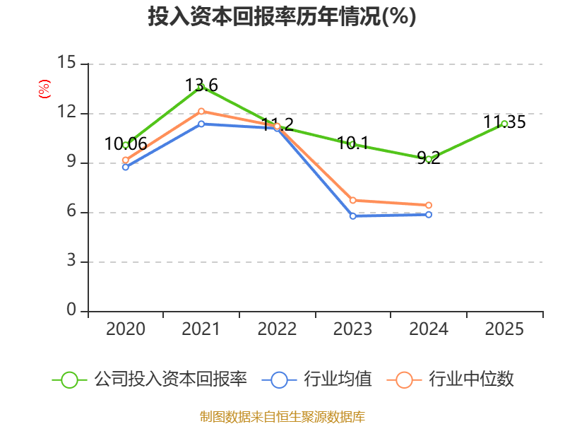 数据显示,2025年公司加权平均净资产收益率为12.14%,较上年同期上升1.85个百分点。公司2025年投入资本回报率为11.35%,较上年同期上升2.15个百分点。