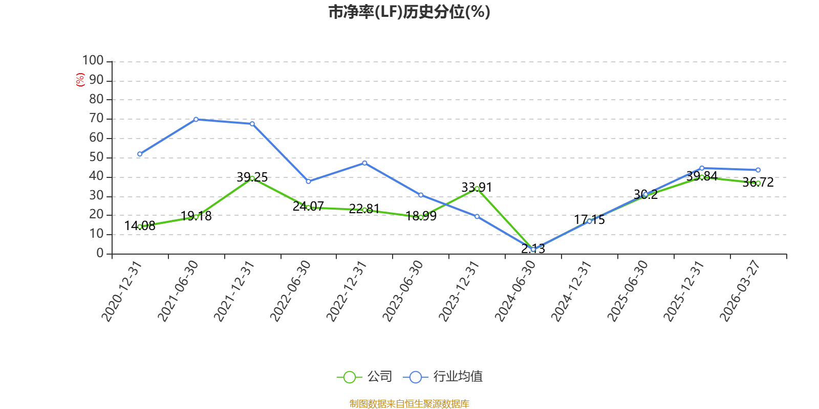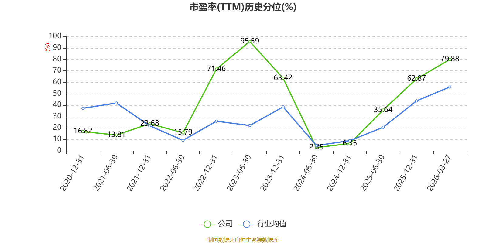 市盈率、市净率为负时,不显示当期分位数,会导致折线图中断。