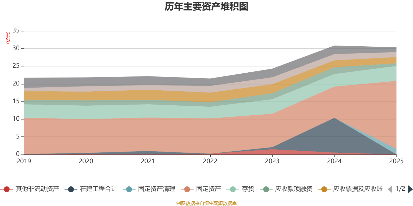 资产重大变化方面,截至2025年末,公司固定资产较上年末增加117.98%,占公司总资产比重上升34.8个百分点;在建工程合计较上年末减少99.99%,占公司总资产比重下降31.85个百分点;固定资产清理占公司总资产的5.17%,上年末为0;应收款项融资较上年末减少60.84%,占公司总资产比重下降3.76个百分点。