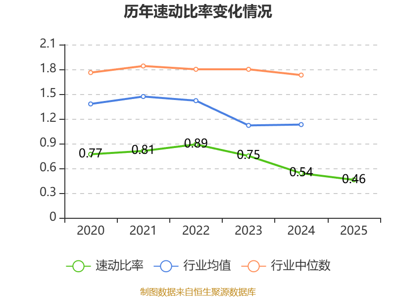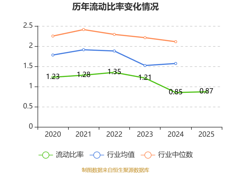 2025年,公司流动比率为0.87,速动比率为0.46。