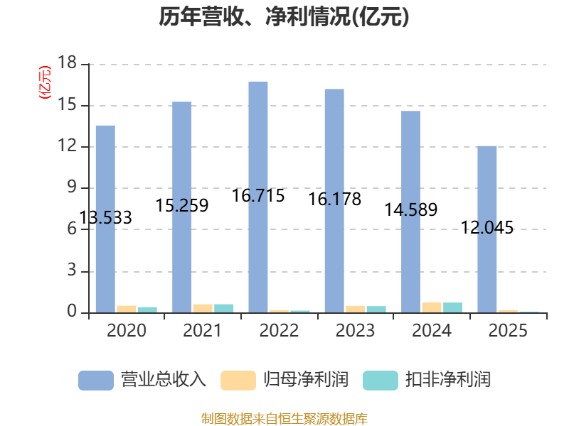 中证智能财讯民丰特纸(600235)3月28日披露2025年年度报告。2025年,公司实现营业总收入12.04亿元,同比下降17.44%;归母净利润1628.37万元,同比下降77.38%;扣非净利润521.69万元,同比下降92.71%;经营活动产生的现金流量净额为2.72亿元,同比增长3.65%;报告期内,民丰特纸基本每股收益为0.05元,加权平均净资产收益率为1.08%。公司2025年度分配预案为:拟向全体股东每10股派现0.15元(含税)。