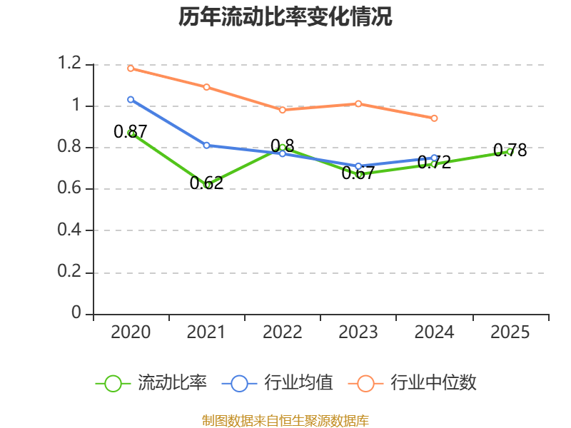 2025年,公司流动比率为0.78,速动比率为0.25。