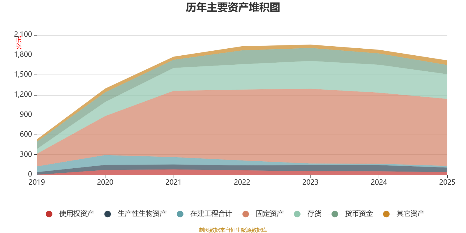 资产重大变化方面,截至2025年末,公司固定资产较上年末减少5.73%,占公司总资产比重上升1.71个百分点;生产性生物资产较上年末减少27.34%,占公司总资产比重下降1.03个百分点;货币资金较上年末减少18.22%,占公司总资产比重下降0.96个百分点;存货较上年末减少11.42%,占公司总资产比重下降0.72个百分点。