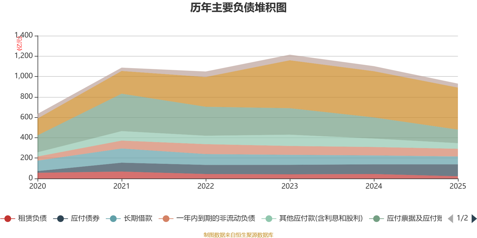 负债重大变化方面,截至2025年末,公司应付票据及应付账款较上年末减少35.67%,占公司总资产比重下降3.28个百分点;应付债券较上年末增加23.55%,占公司总资产比重上升1.77个百分点;其他应付款(含利息和股利)较上年末减少33.92%,占公司总资产比重下降1.24个百分点;租赁负债较上年末减少49.96%,占公司总资产比重下降1.05个百分点。