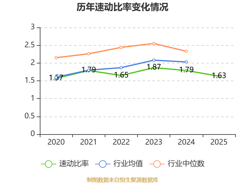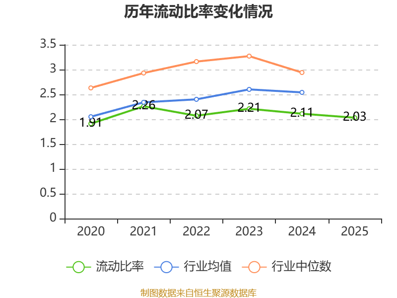 2025年,公司流动比率为2.03,速动比率为1.63。