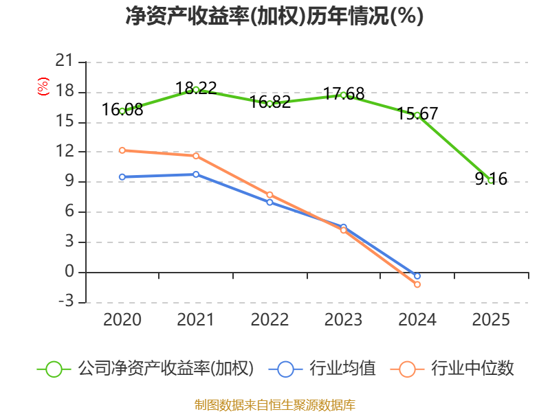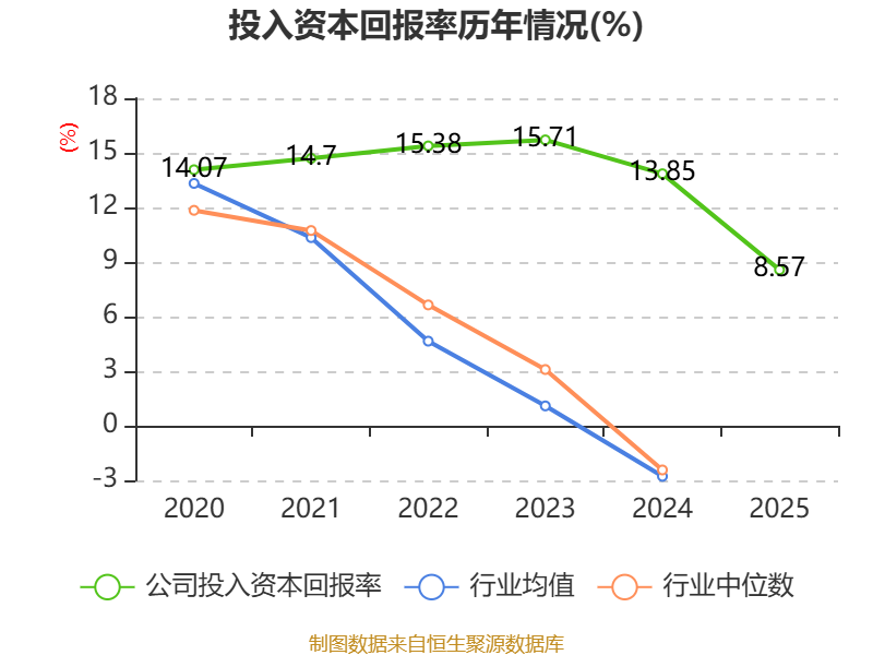 数据显示,2025年公司加权平均净资产收益率为9.16%,较上年同期下降6.51个百分点。公司2025年投入资本回报率为8.57%,较上年同期下降5.28个百分点。