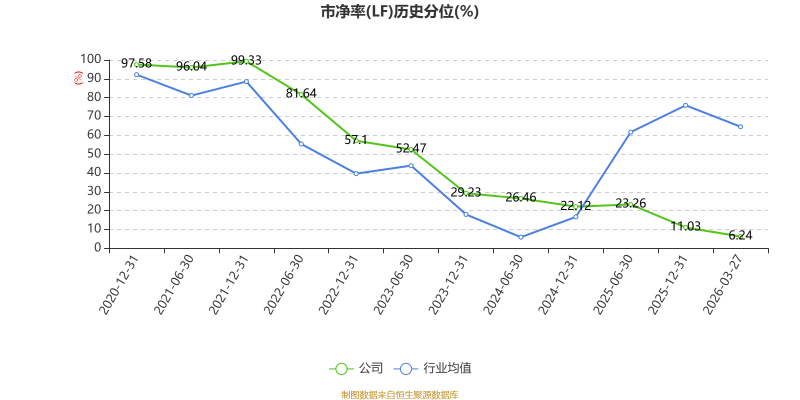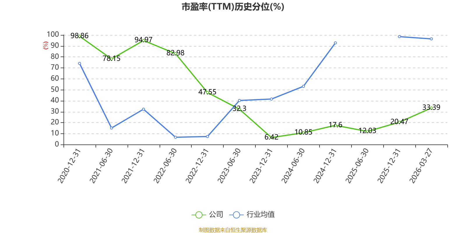 市盈率、市净率为负时,不显示当期分位数,会导致折线图中断。