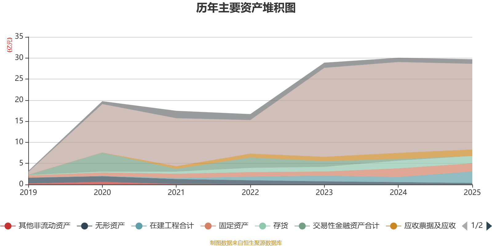 资产重大变化方面,截至2025年末,公司在建工程合计较上年末增加123.48%,占公司总资产比重上升5.18个百分点;货币资金较上年末减少5.69%,占公司总资产比重下降3.27个百分点;交易性金融资产合计较上年末减少100%,占公司总资产比重下降1.35个百分点;其他流动资产较上年末增加538.06%,占公司总资产比重上升0.83个百分点。