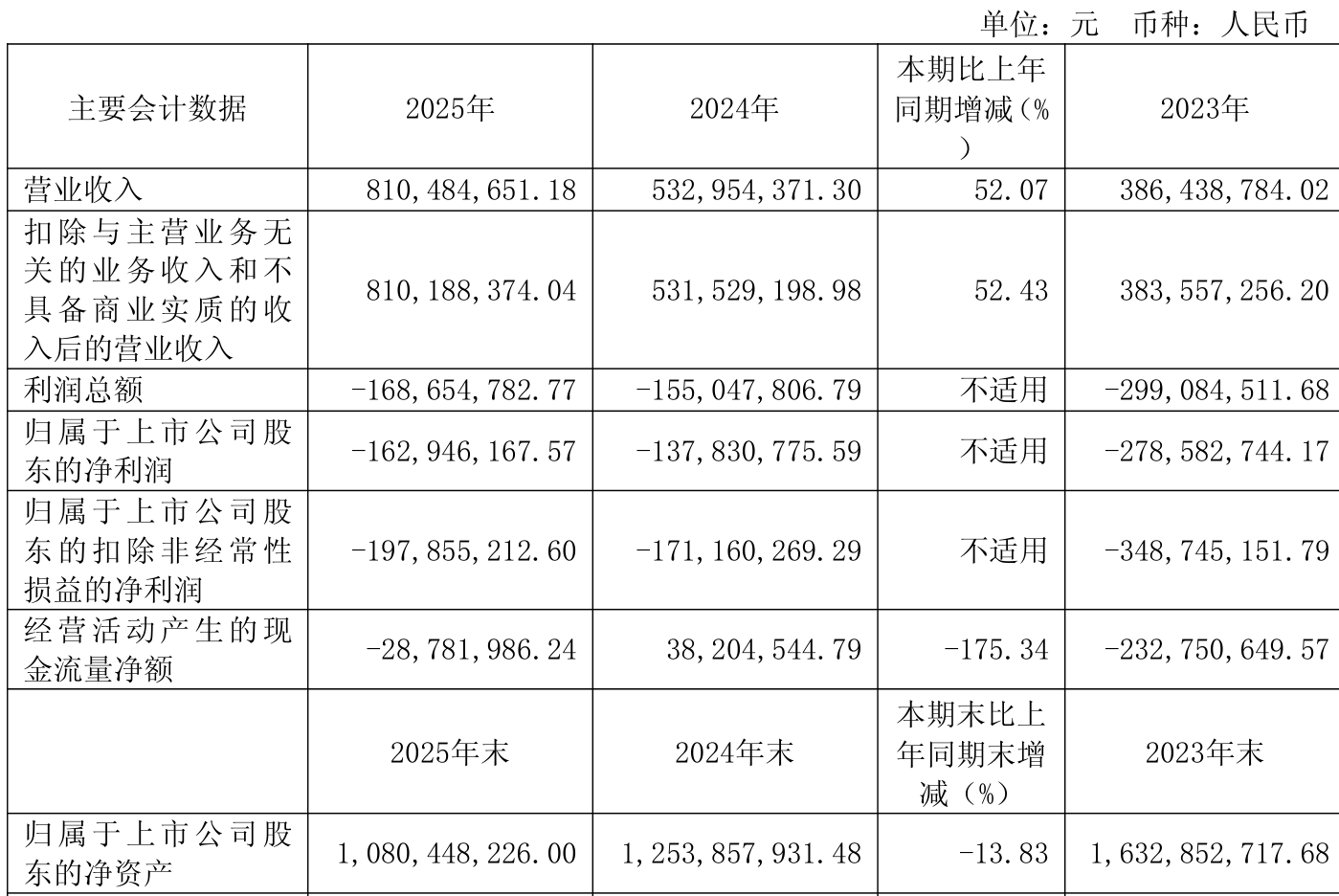 中证智能财讯泽璟制药(688266)3月28日披露2025年年度报告。2025年,公司实现营业总收入8.1亿元,同比增长52.07%;归母净利润亏损1.63亿元,上年同期亏损1.38亿元;扣非净利润亏损1.98亿元,上年同期亏损1.71亿元;经营活动产生的现金流量净额为-2878.2万元,上年同期为3820.45万元;报告期内,泽璟制药基本每股收益为-0.62元,加权平均净资产收益率为-13.96%。