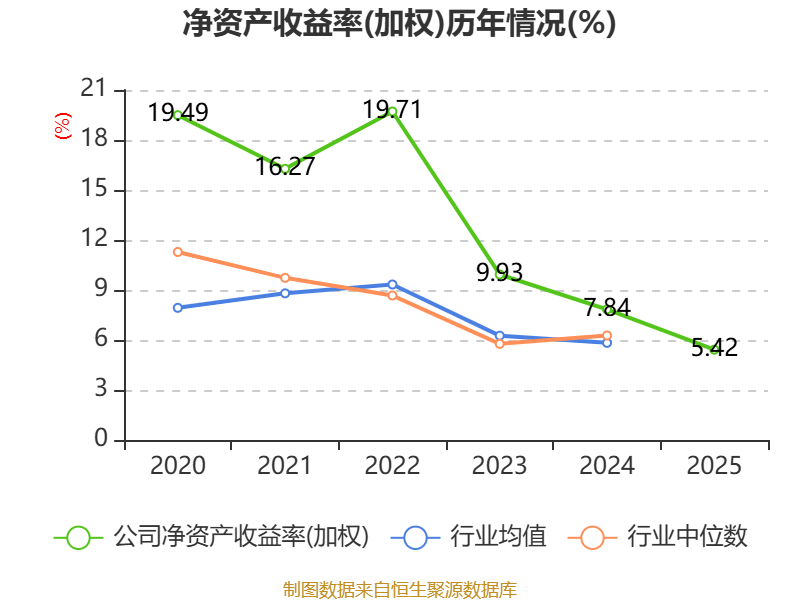 数据显示,2025年公司加权平均净资产收益率为5.42%,较上年同期下降2.42个百分点。公司2025年投入资本回报率为4.03%,较上年同期下降2.39个百分点。