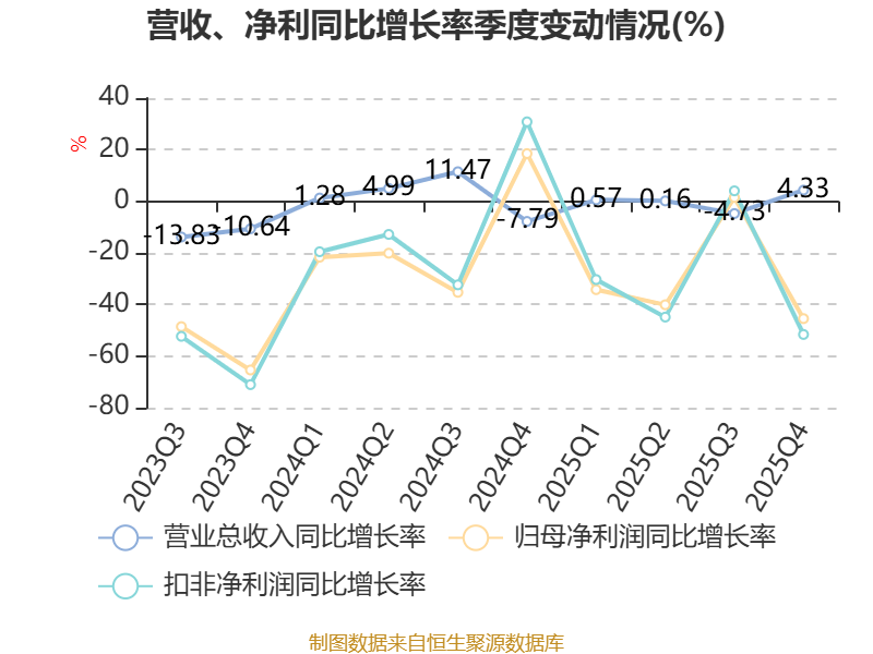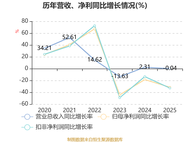 中证智能财讯濮阳惠成(300481)3月28日披露2025年年度报告。2025年,公司实现营业总收入14.1亿元,同比下降0.04%;归母净利润1.31亿元,同比下降31.44%;扣非净利润1.2亿元,同比下降32.87%;经营活动产生的现金流量净额为1.52亿元,同比下降38.41%;报告期内,濮阳惠成基本每股收益为0.45元,加权平均净资产收益率为5.42%。公司2025年度分配预案为:拟向全体股东每10股派现2元(含税)。