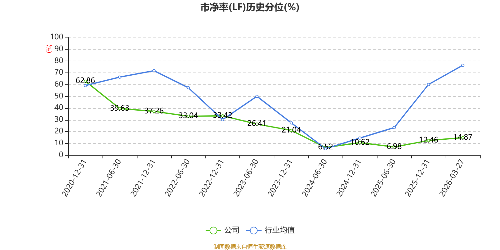 市盈率、市净率为负时,不显示当期分位数,会导致折线图中断。